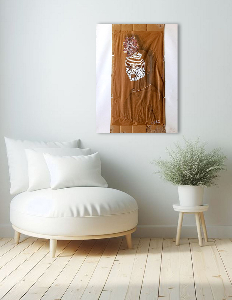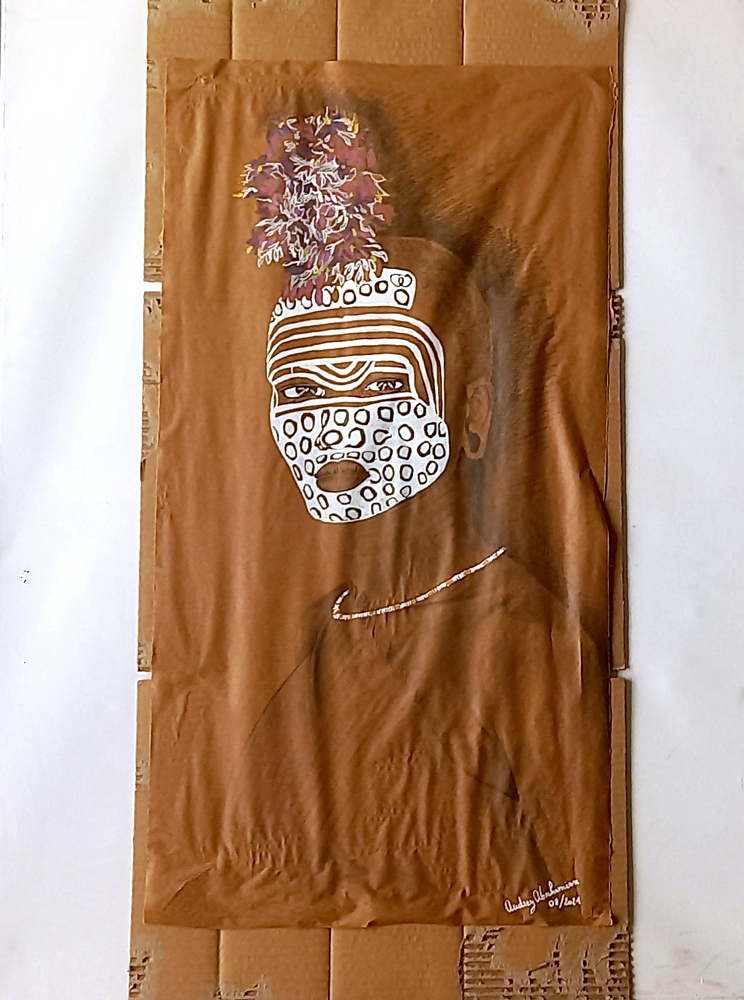 Technique mixte : Acrylique sur, crayon support craft, carton sur toile, 60×80 cm. Éthiopie suri girl (2021), d’après une photo de Giovanna Aryafara. Dessin par Audrey Laure Abrahamian LAA.